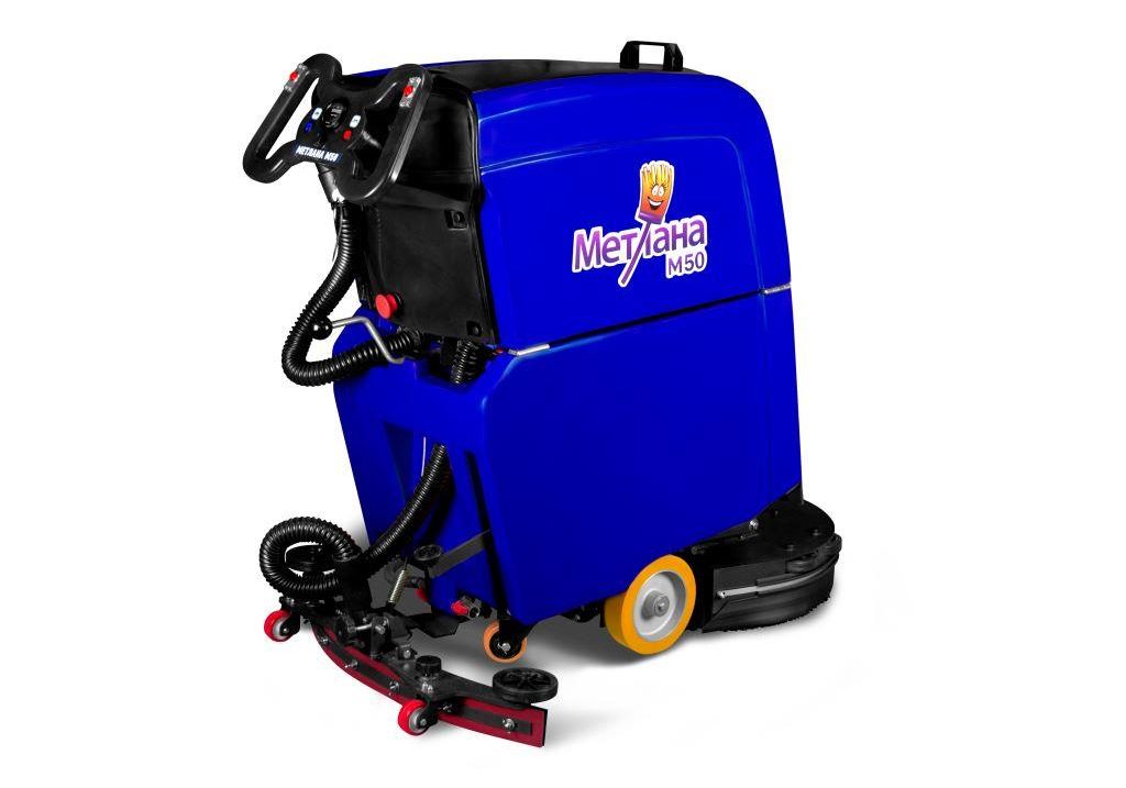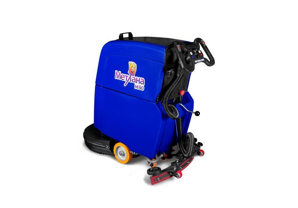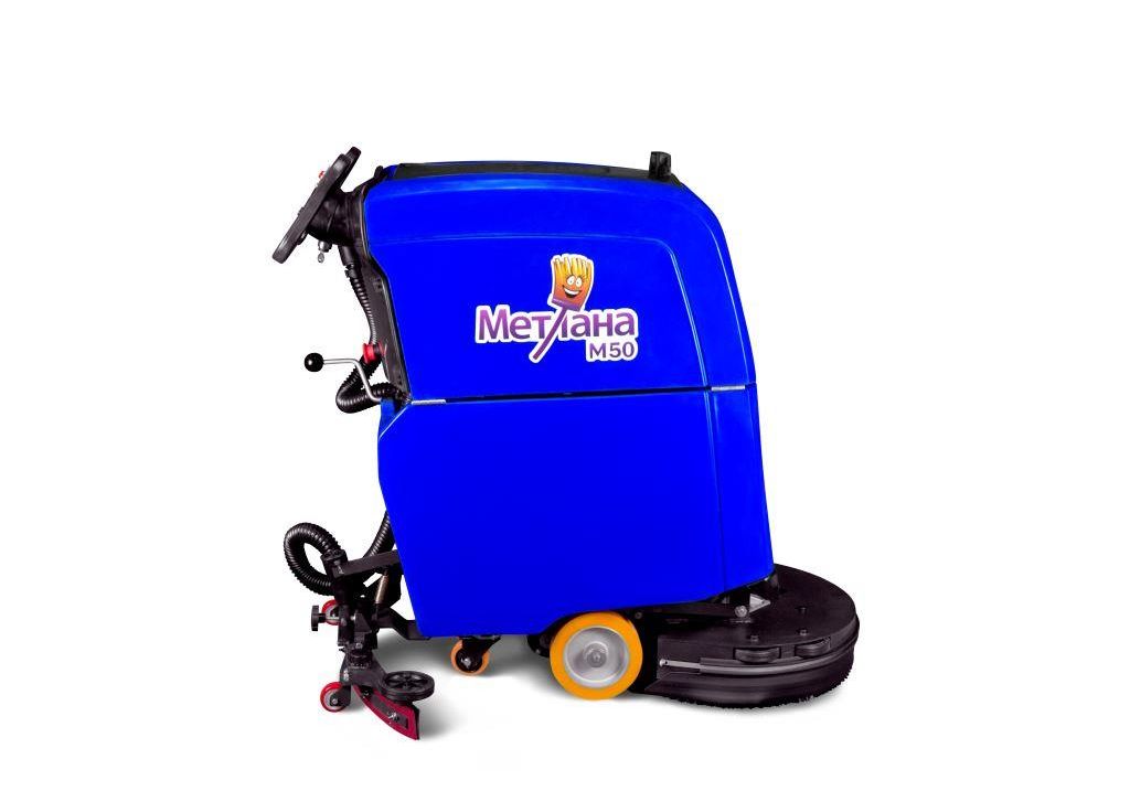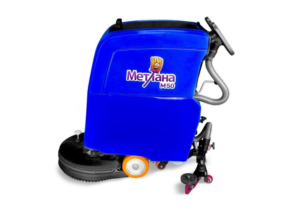 Аккумуляторная поломоечная машина "Метлана M50BТ" с приводом на колеса, баками 40/50 л., шириной захвата 50 см. и продолжительностью автономной работы до 2 часов*, спроектирована, создана и серийно выпускается в России. Машина безупречно справляется с задачами по уборке площадей до 4500 квадратных метров, надежна и проста в обслуживании.