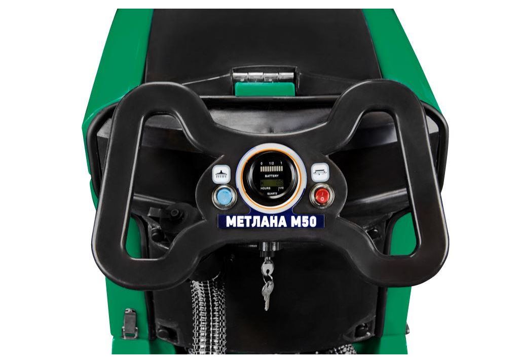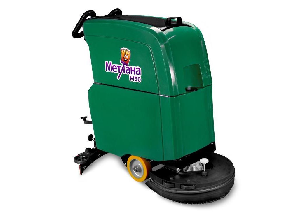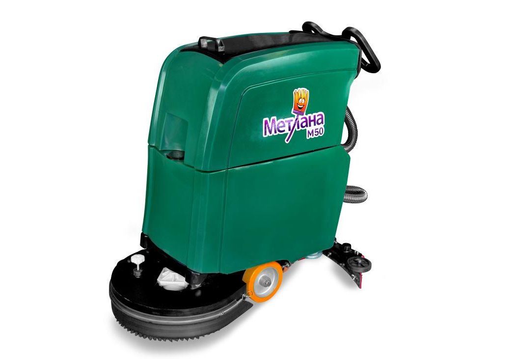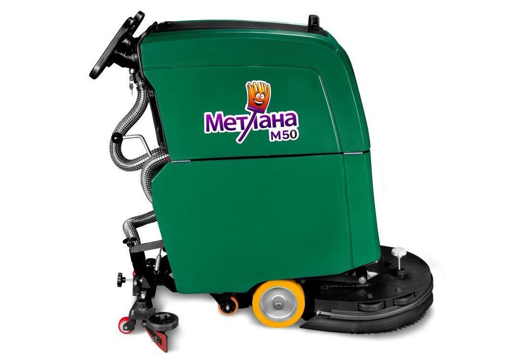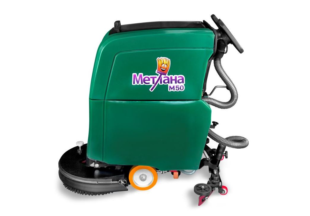 Аккумуляторная поломоечная машина "Метлана M50B" с баками 40/50 л., шириной захвата 50 см. и продолжительностью автономной работы более 2,5 часов*, спроектирована, создана и серийно выпускается в России. Машина безупречно справляется с задачами по уборке площадей до 4500 квадратных метров, надежна и проста в обслуживании.