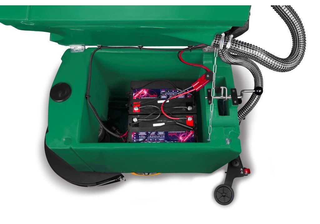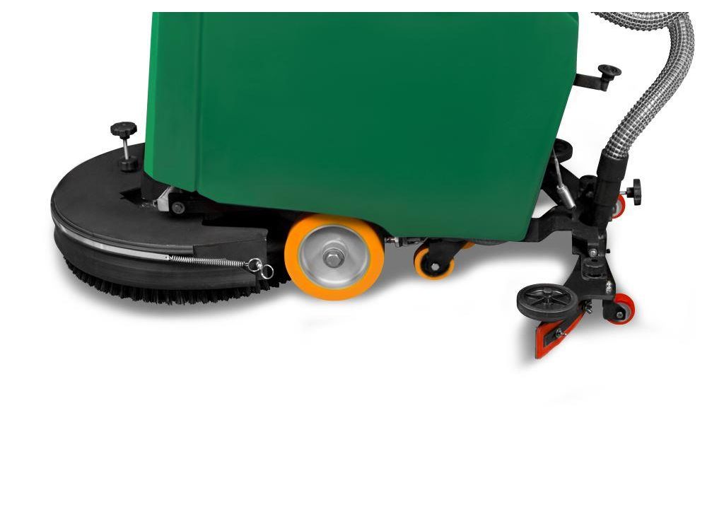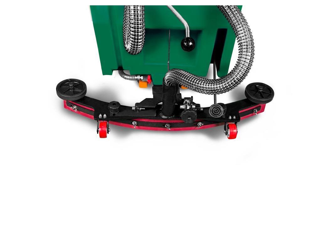 Конструкция поломоечной машины состоит из рамы-тележки, изготовленной из 5-ти миллиметровой стали, с промышленными 180-ти миллиметровыми колесами на подшипниках, баков из ударопрочного полиэтилена, алюминиевого собирающего узла, панели управления, вакуумного мотора и мотора привода щетки (моторы - это единственные импортные узлы, используемые в машине, которые в перспективе будут заменены электромоторами собственного производства).